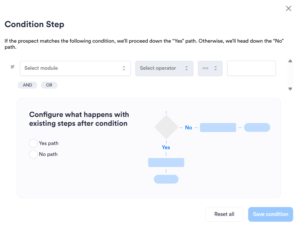 Choose an option from the Select operator drop-down. The operators available to you are different depending on the Module you selected in the previous step.