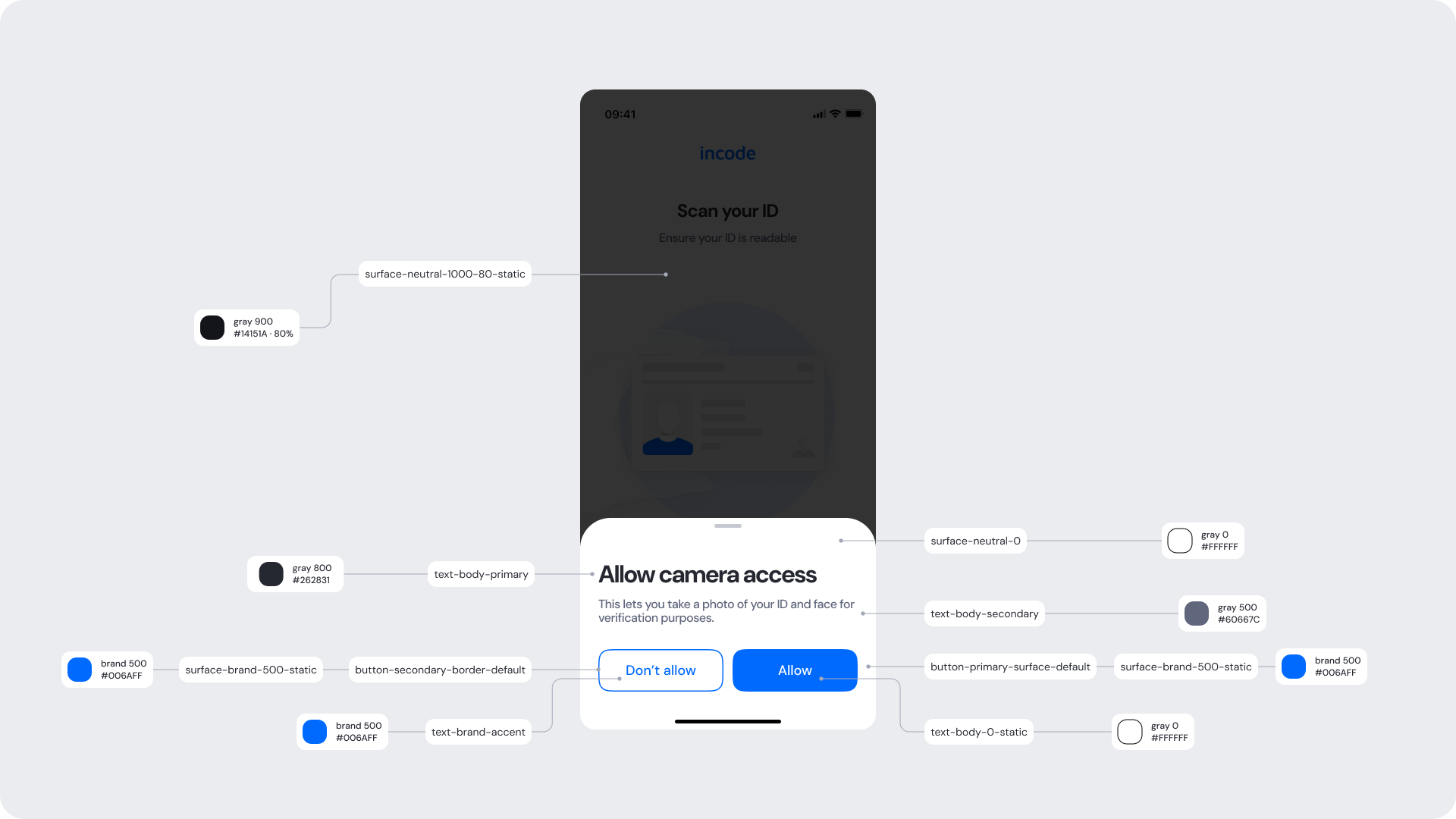 | Buttons | Label (“Allow”, “Don’t allow”), color, radius | Must maintain primary/secondary hierarchy |