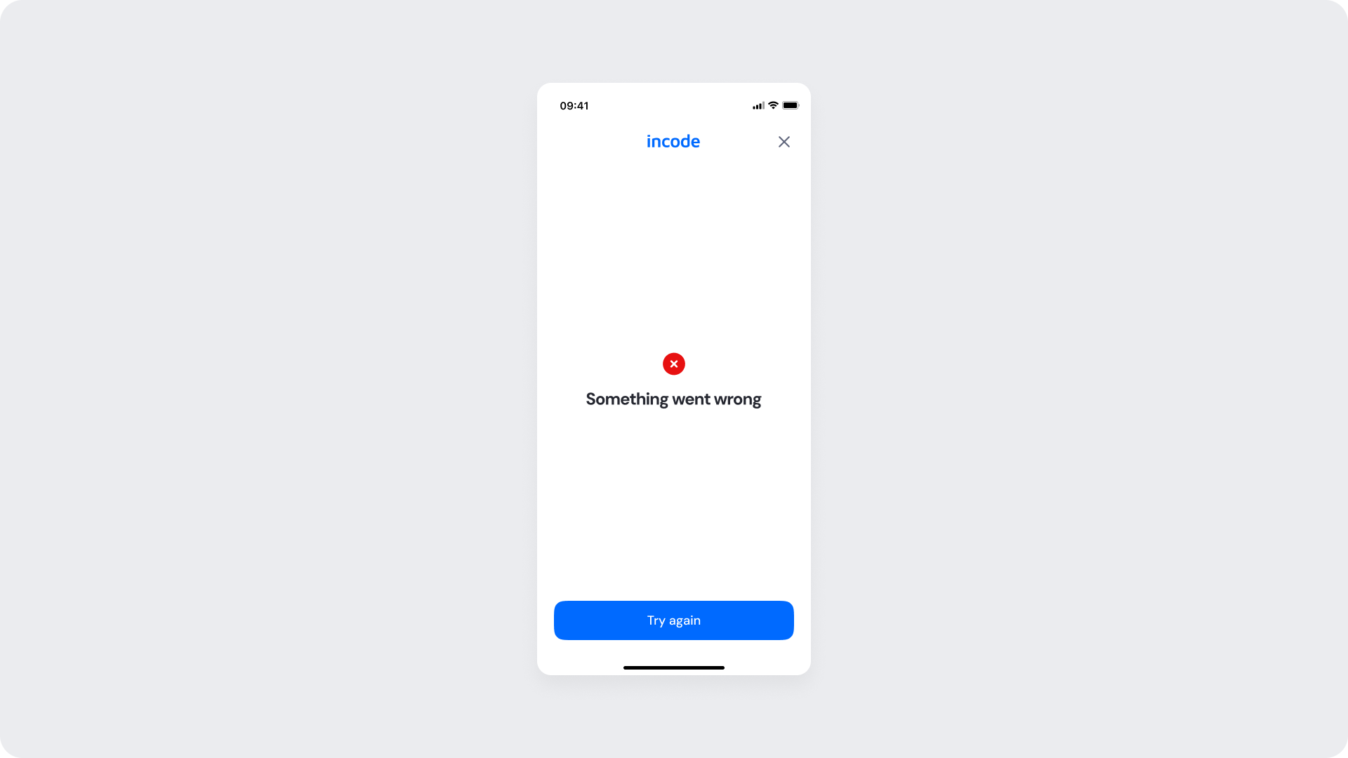 A clear error message and icon communicate the outcome. The Try again CTA allows the user to restart the verification attempt. Depending on configuration, retry limits or escalation logic may apply.