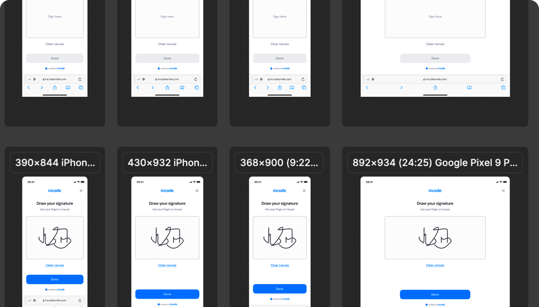 The Electronic Signature module is fully responsive and adapts seamlessly to a wide range of device sizes and aspect ratios. The layout is designed to remain consistent and predictable whether the user is on a small phone, large phone, foldable device, or tablet.