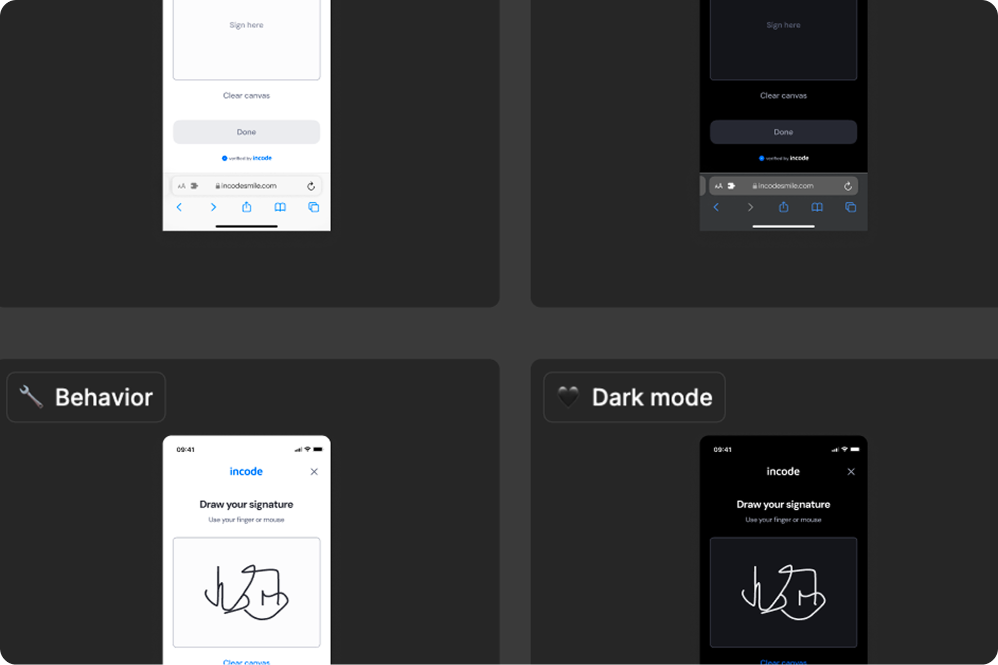 Electronic Signature includes predefined transition rules and micro-interactions that ensure a smooth user experience from the image comparison, to the successful and error states. Timing, easing, and animation guidelines are documented directly in Figma prototypes.