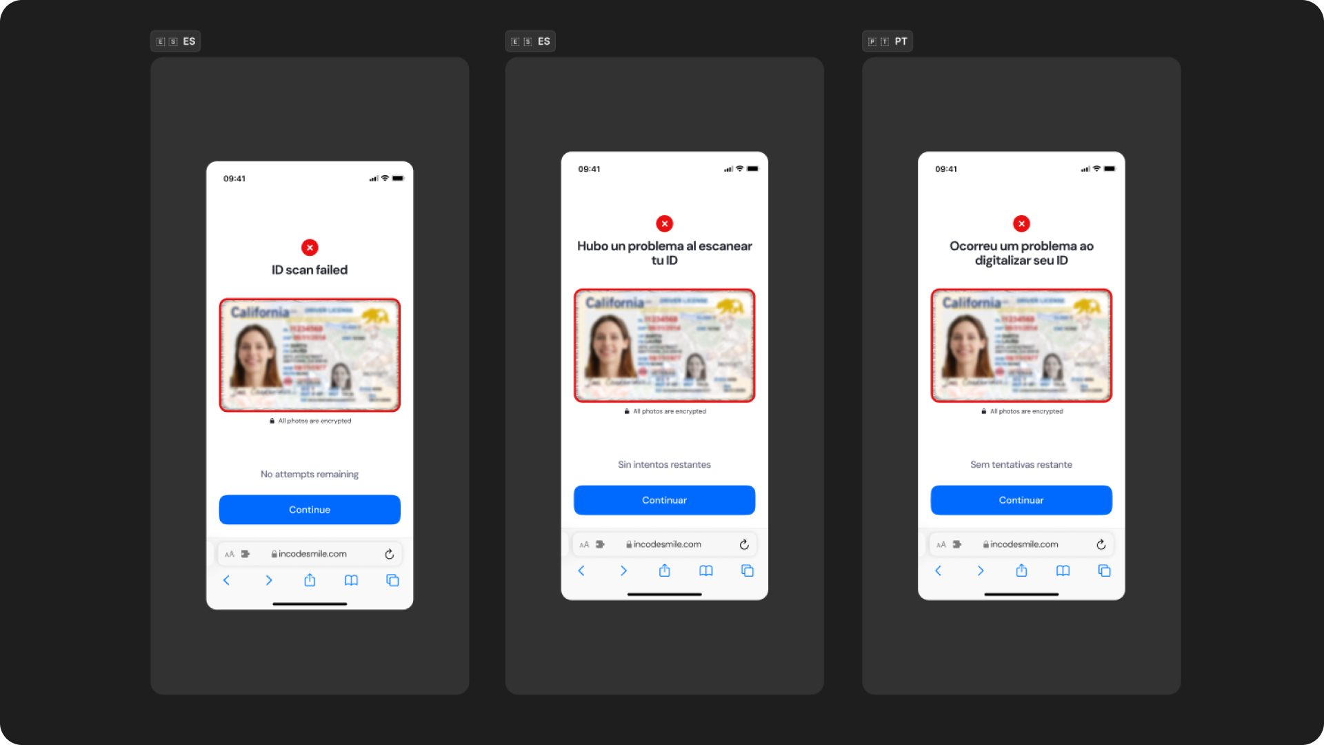 This ensures that user instructions, document type names, and error messages (such as “Glare present” or “ID scan failed”) remain readable and correctly positioned across languages.