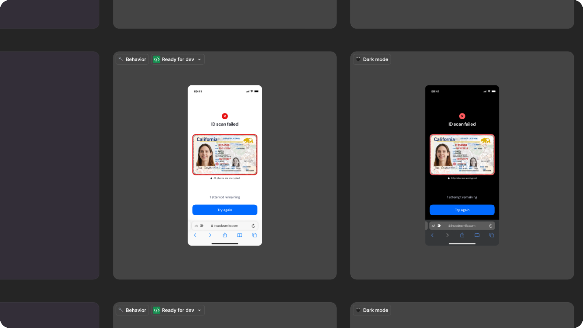 The ID Capture module includes complete Figma specifications detailing spacing, layout rules, typography tokens, and language variants for ID Capture flows. These specifications ensure consistent behavior and appearance across all platforms, while allowing localized versions of the UI to scale correctly without breaking alignment or interfering with the document frame.