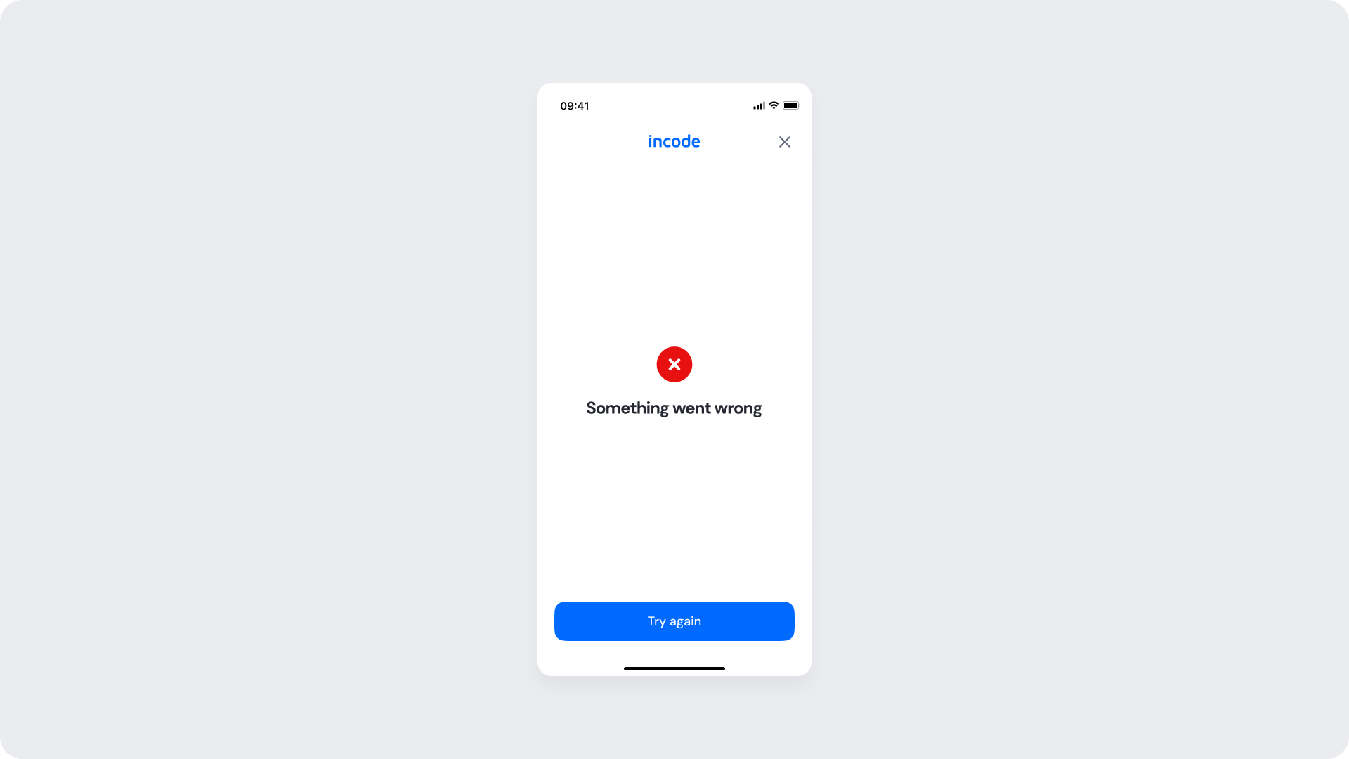 This screen appears when a critical issue prevents the verification process from completing — for example, a timeout, or unexpected backend failure.