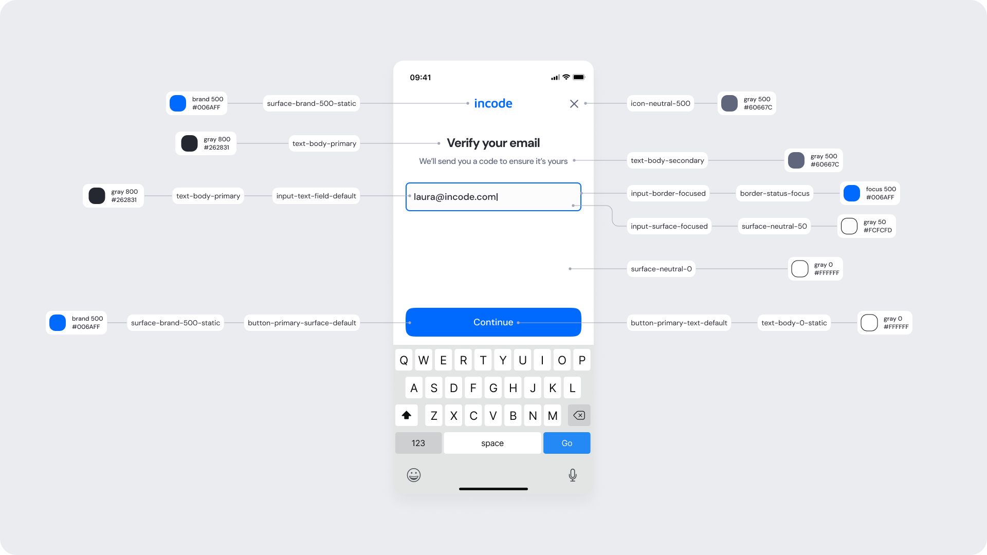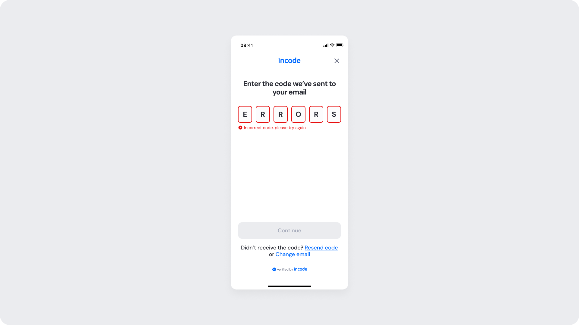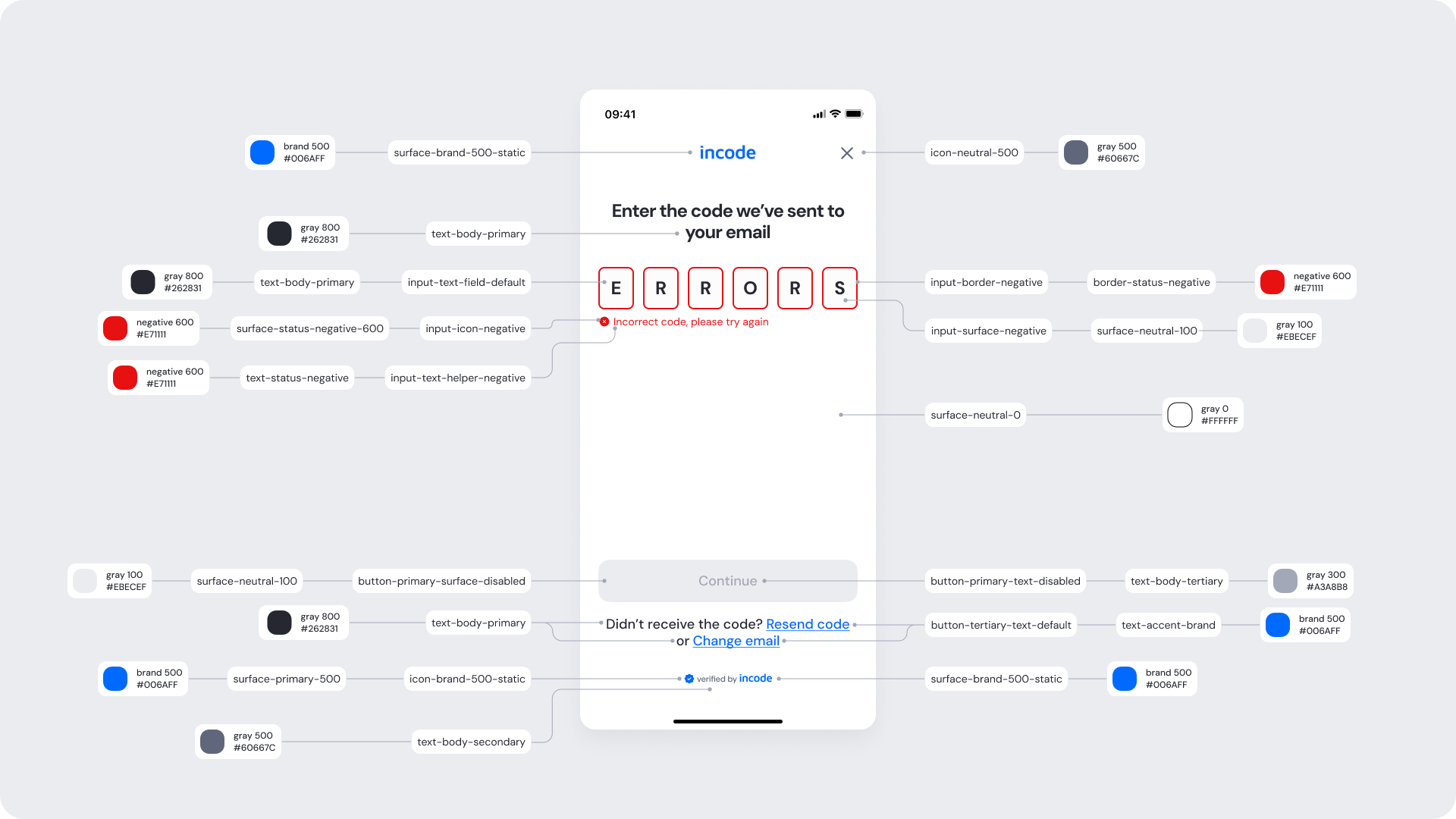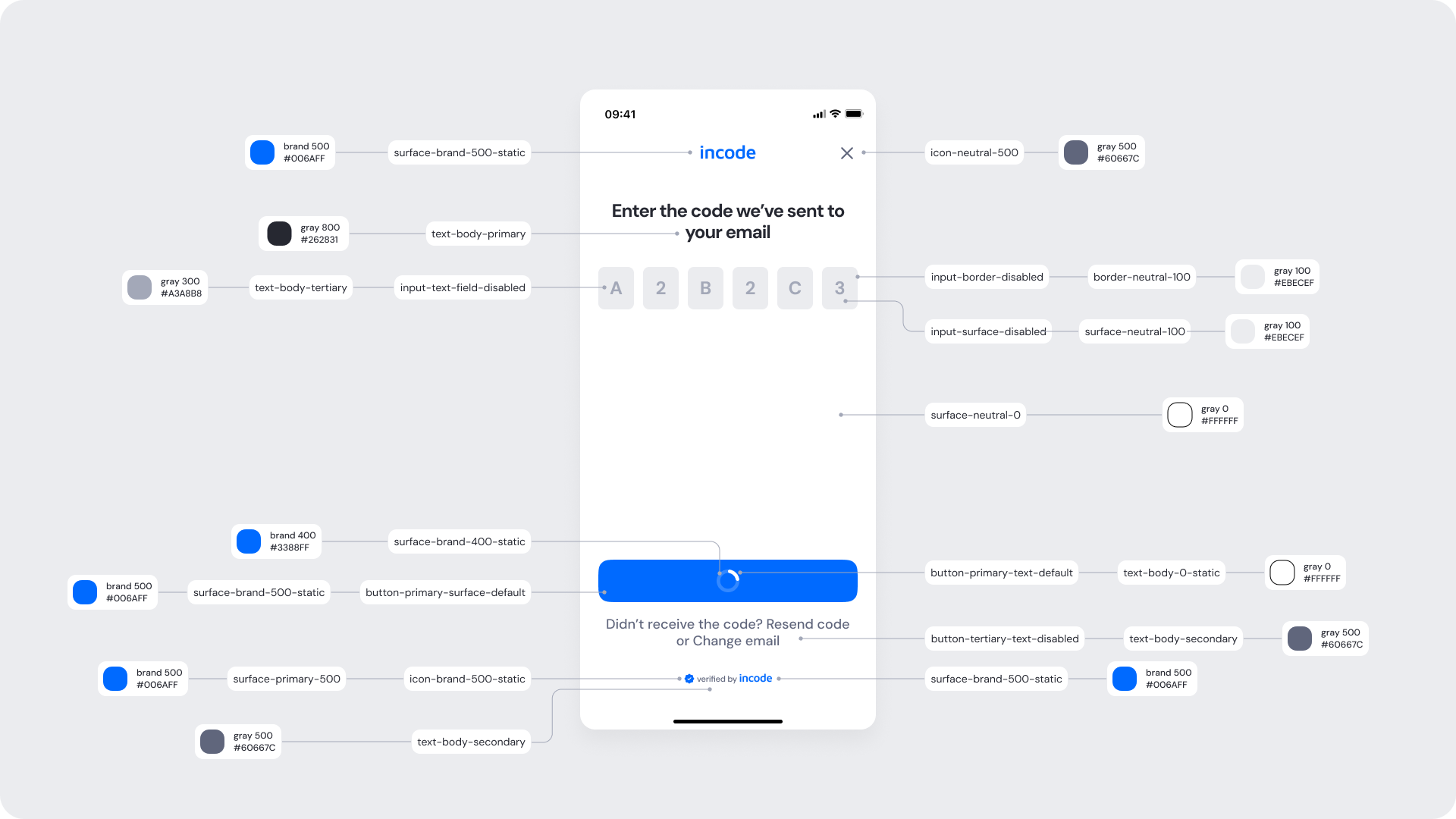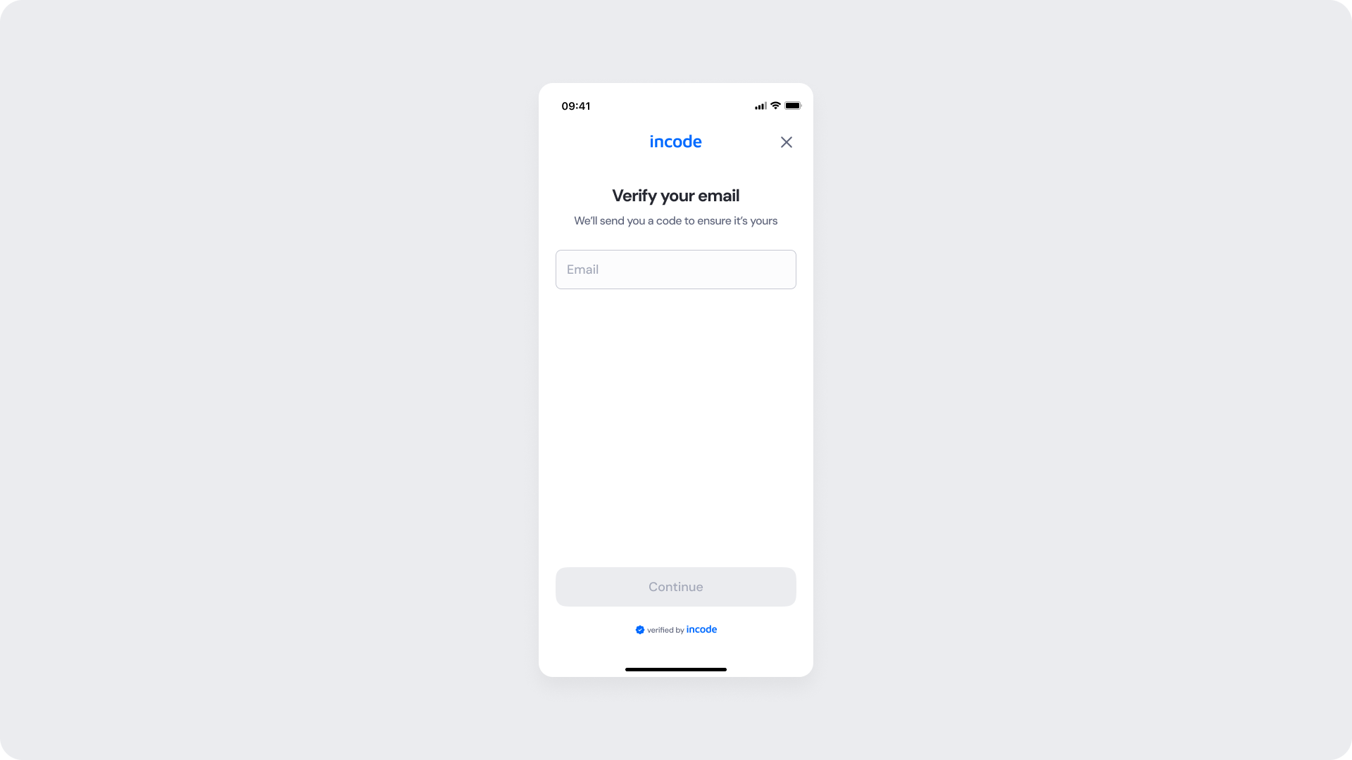 This section outlines the elements you can customize within the Email Input module to match your brand while preserving Incode’s core UX. It clarifies which areas are flexible, such as text, and brand colors and which elements remain fixed to ensure consistency, accessibility, and optimal capture performance across platforms.