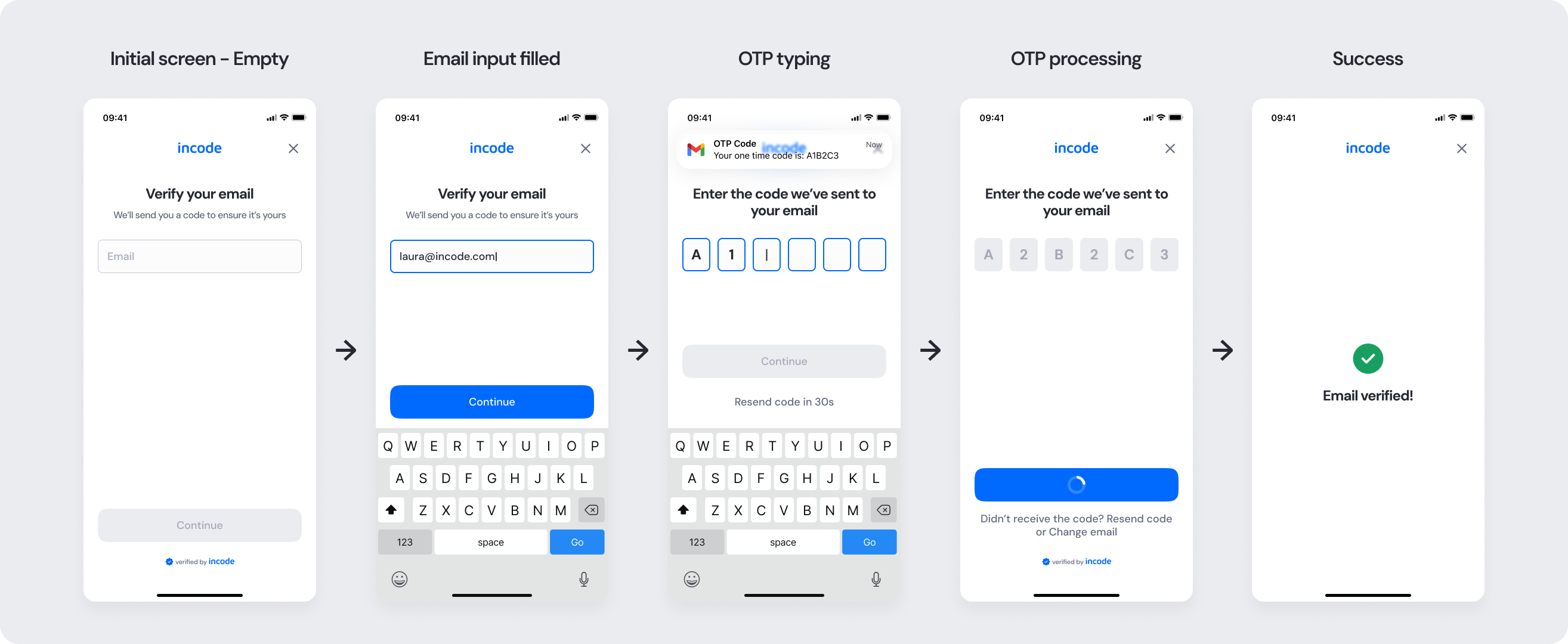 The Email Input module allows users to verify their email address by entering it and confirming a one-time passcode (OTP) sent to their inbox. This module ensures email ownership, a key step in identity verification and account activation flows. It is designed for clarity, speed, and accessibility — optimized for both native and web environments.