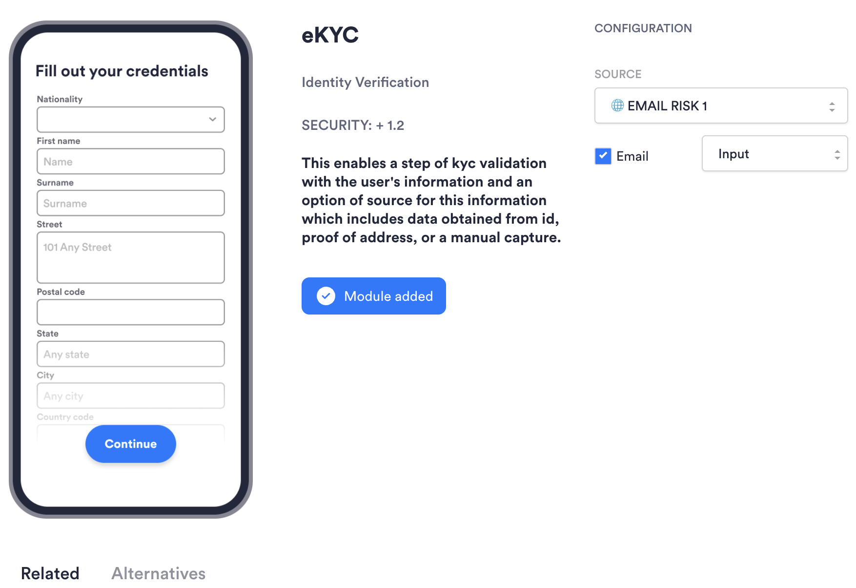 All module configurations and user data can be forwarded directly in the request for performing an eKYC search. This will override existing configuration and data collected about the user.
