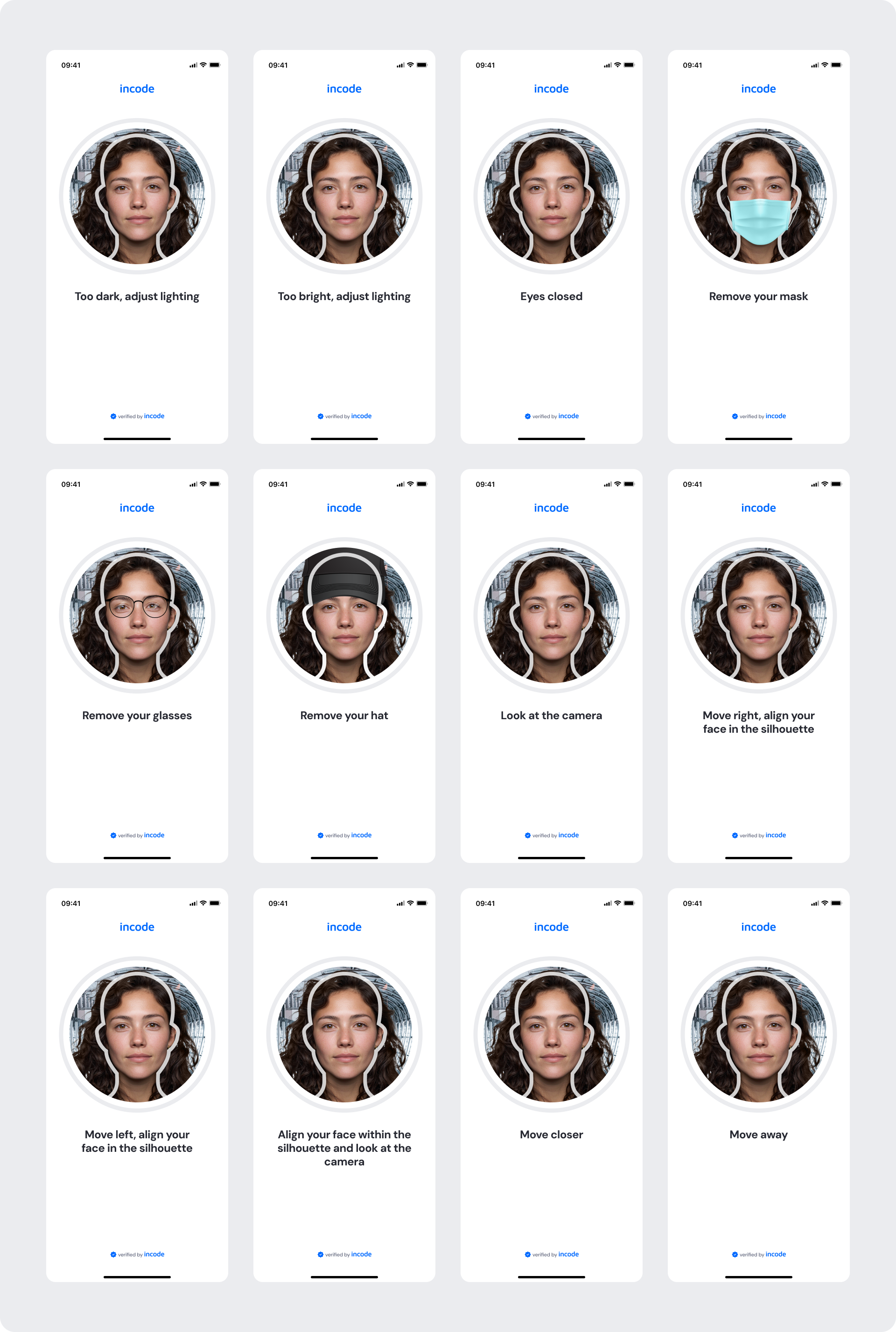 Real-time, contextual guidance displayed while the camera is active. Helps users correct lighting, distance, positioning, and visibility issues to ensure a valid capture.