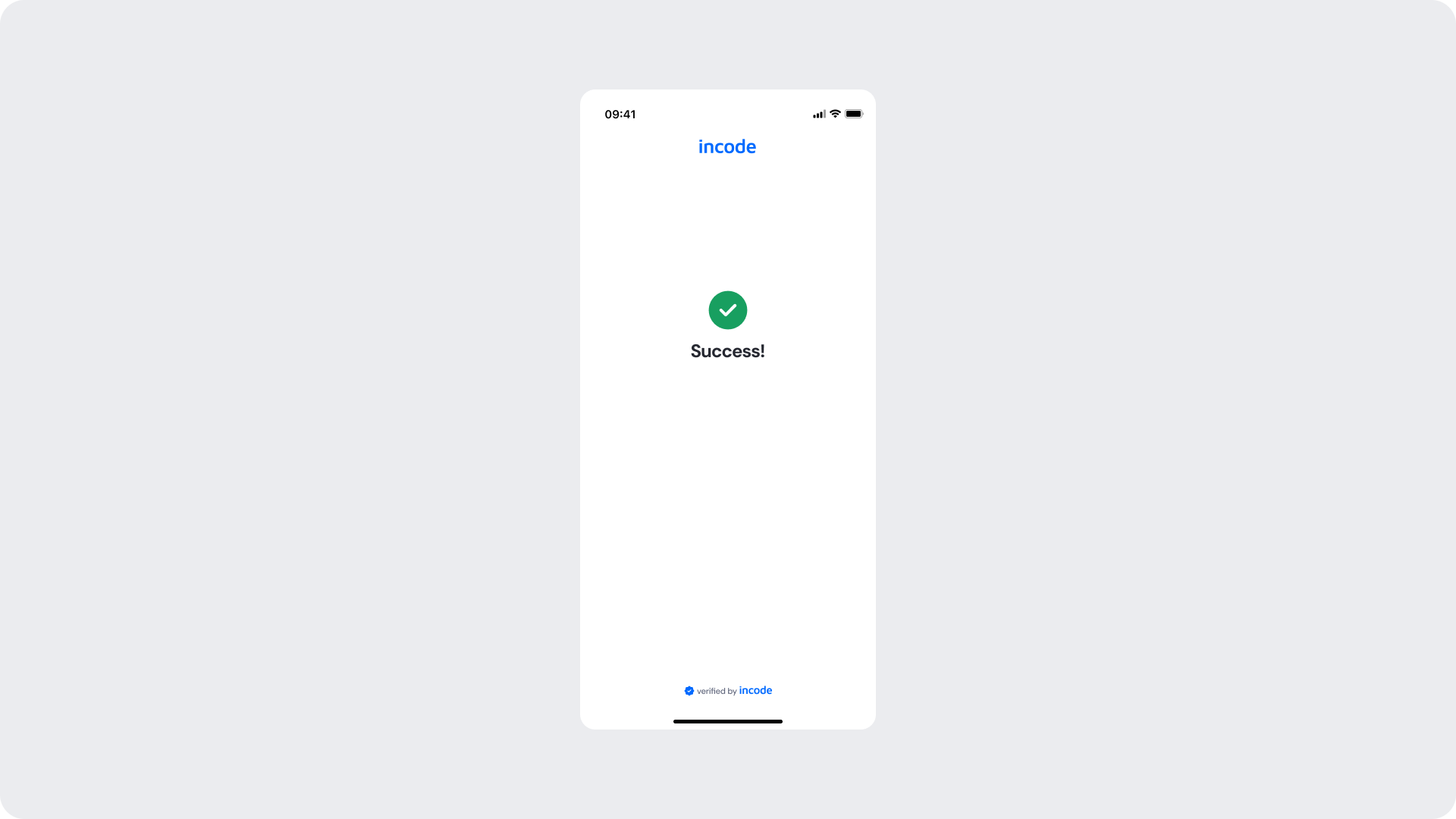 Shown when the selfie passes validation. The user can proceed to the next verification step without additional input.