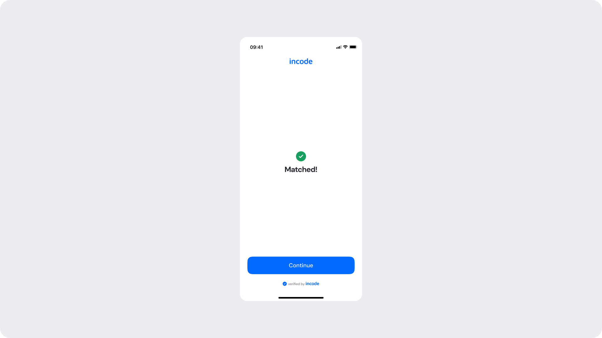 Shown when the face match is successful. The user can proceed to the next verification step without additional input.