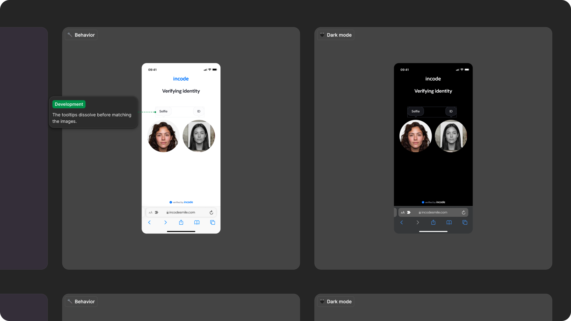 Face Match includes predefined transition rules and micro-interactions that ensure a smooth user experience from the image comparison, to the successful and error states. Timing, easing, and animation guidelines are documented directly in Figma prototypes.