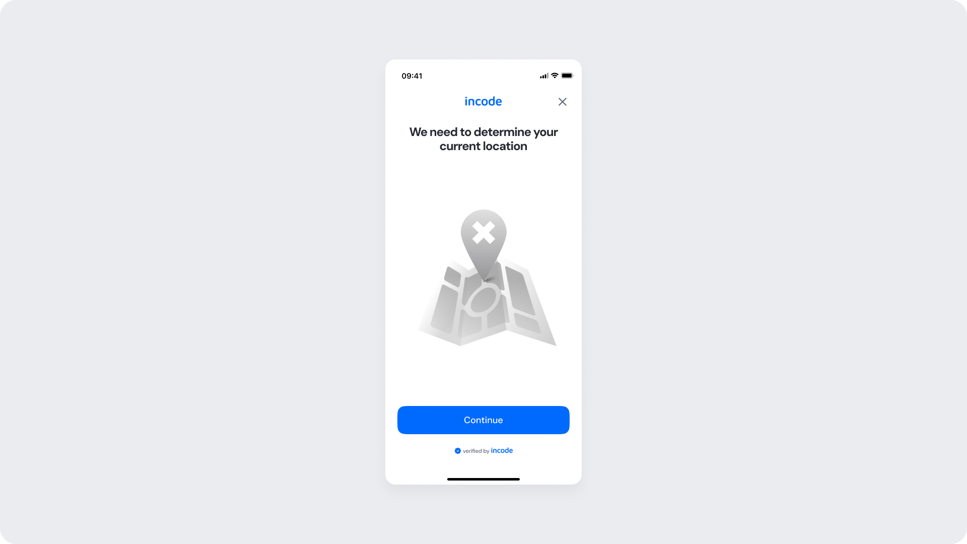 This screen requests permission to access the user’s current location. It is the initial state of the Geolocation step, appearing before any user action is taken.