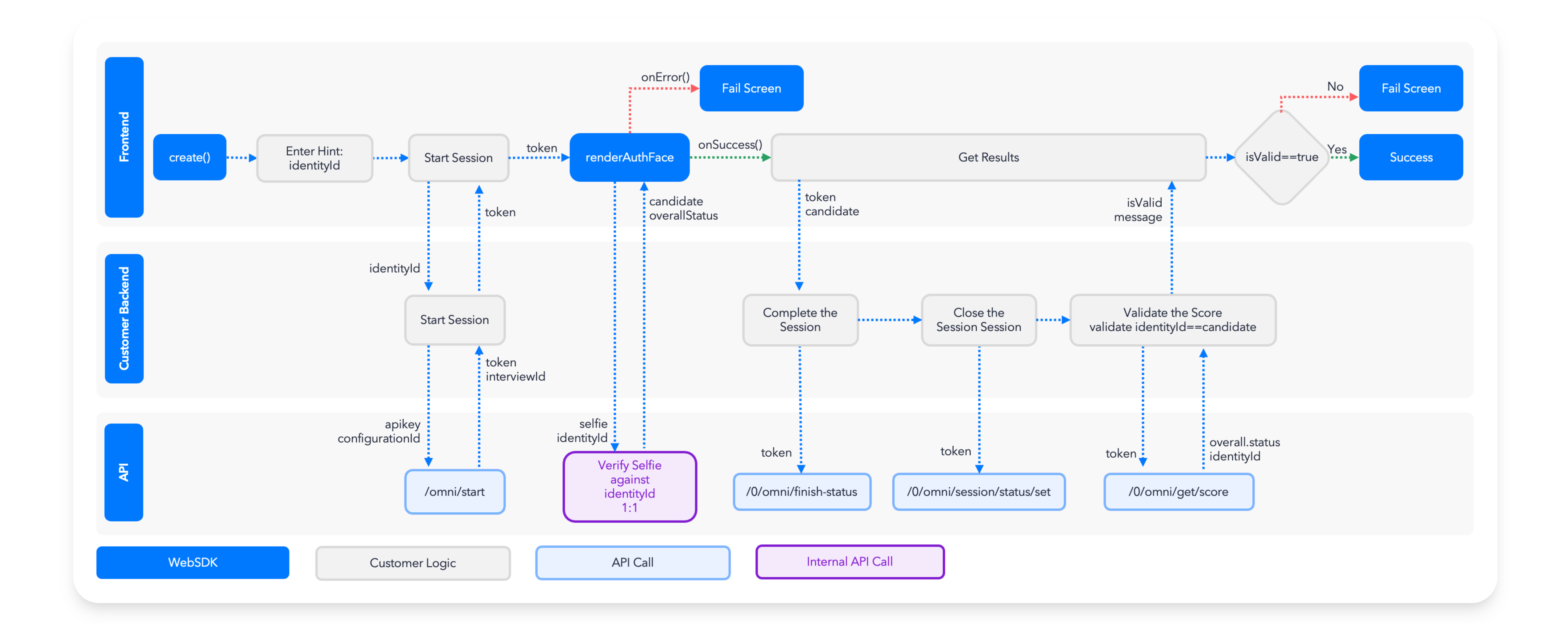 candidatein the frontend matches theidentityIdin the score and makes sure the score isOK - Once validated the authentication can be taken as good.