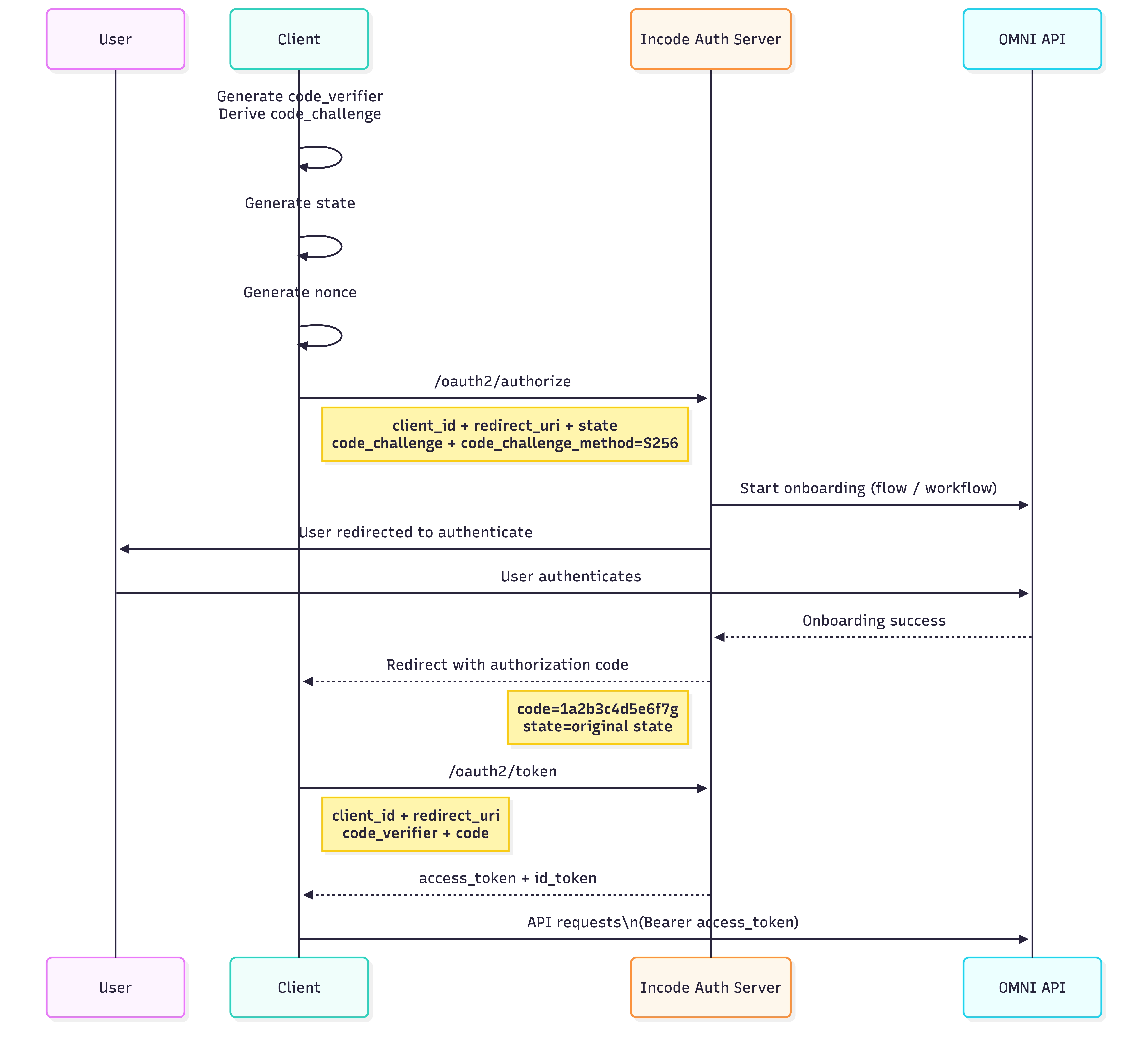 This functionality enforces execution of the flow or workflow as part of an OAuth 2.0 / OpenID Connect (OIDC) authorization flow. In this mode, the onboarding process is executed during the OIDC authorization request and serves as the authentication mechanism, after which the authorization server issues an authorization code upon successful completion.