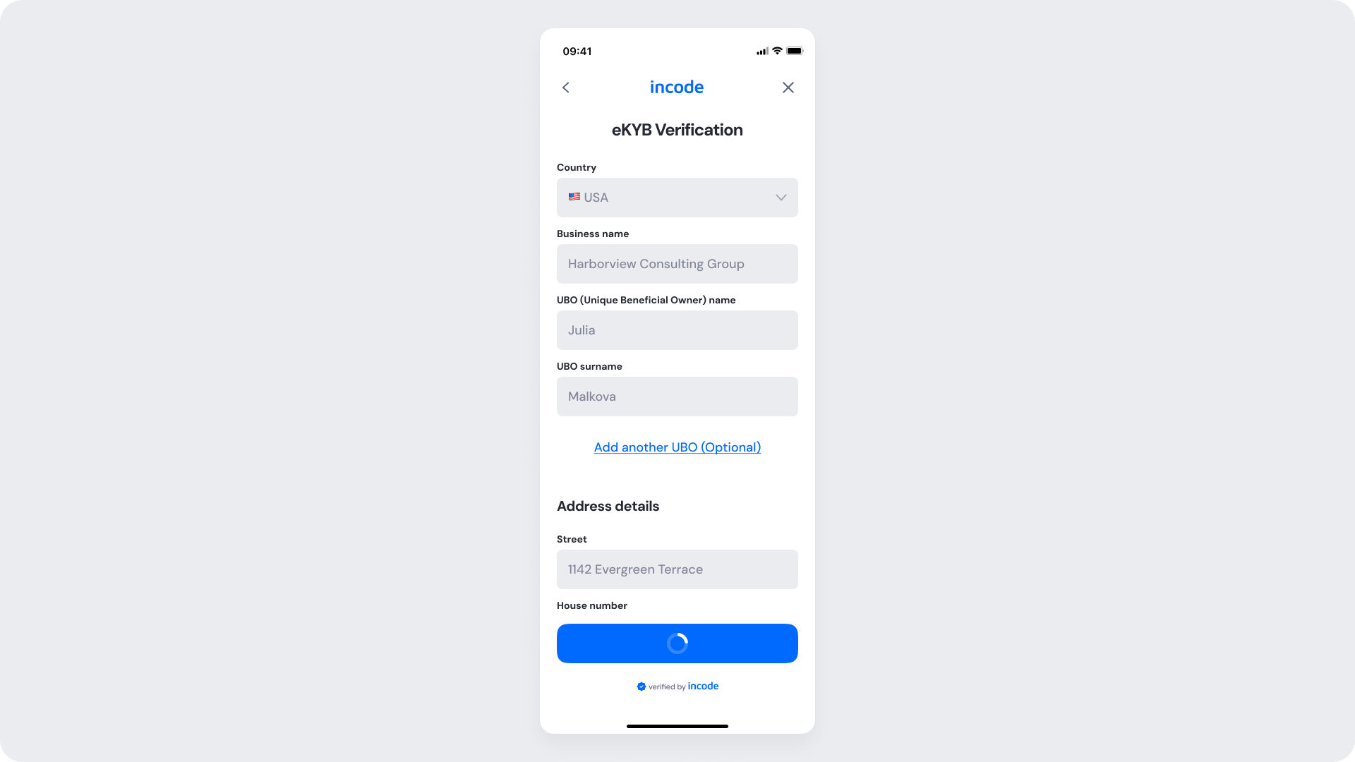Indicates that eKYB verification is in progress after successful submission.