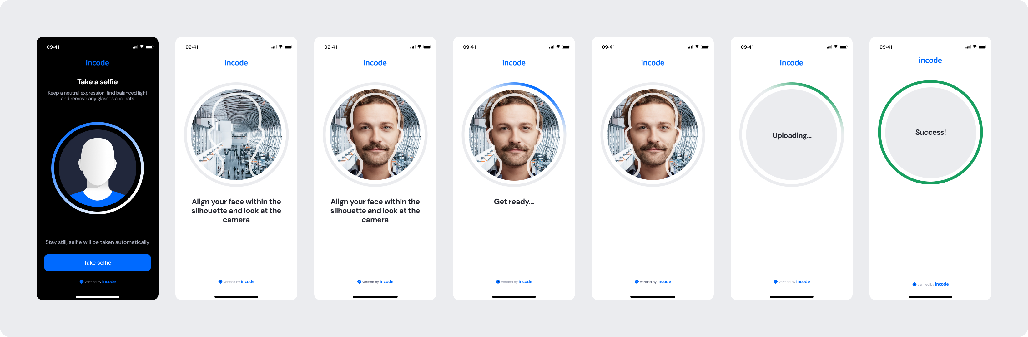 Selfie Capture confirms the user’s physical presence by capturing a live selfie that is later used to validate their identity.