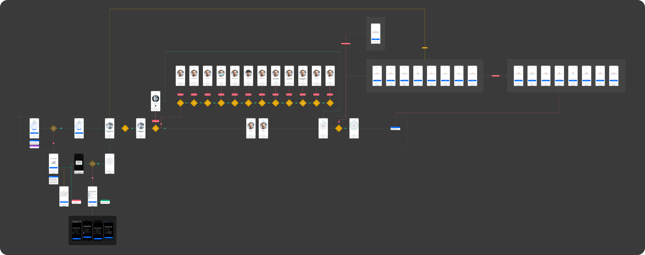 The happy path represents the smoothest version of the experience, where the user grants camera access, follows the tutorial, the system detects proper alignment and lighting, and the selfie is captured automatically without requiring retries or manual intervention. Both light and dark mode previews are included so teams can validate visual consistency across themes.