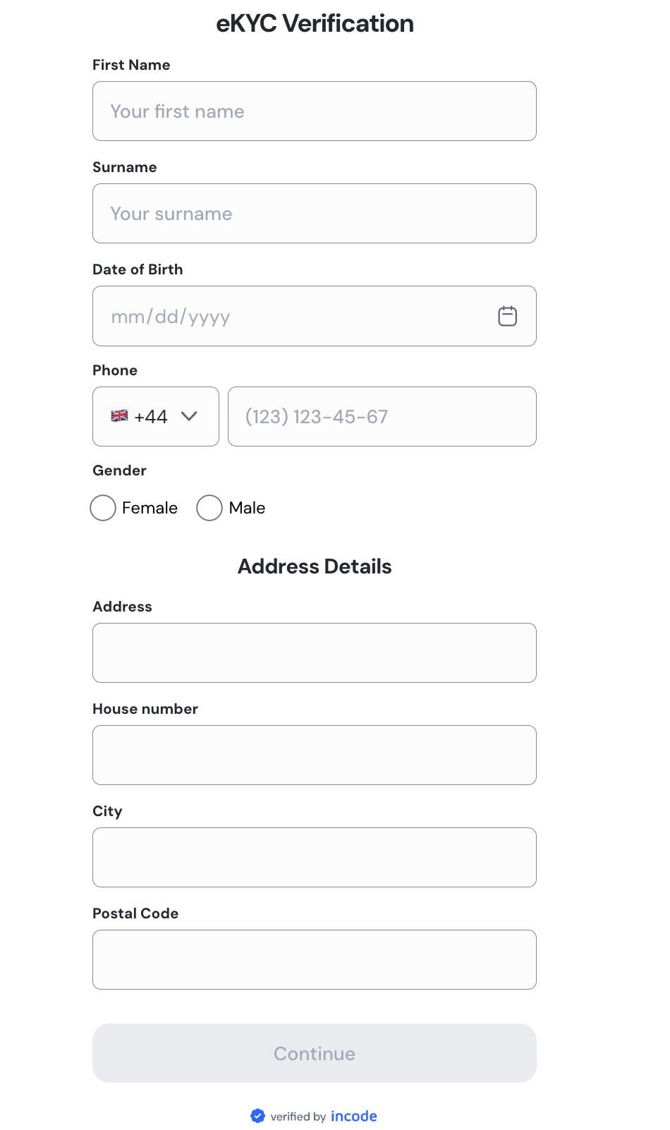 eKYC user input flow example